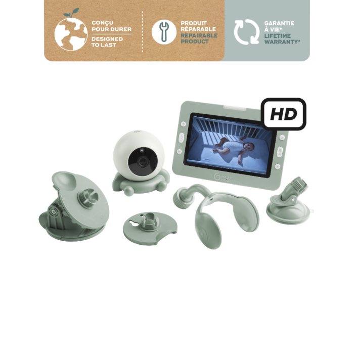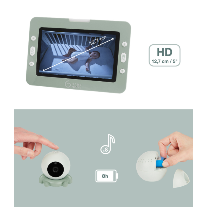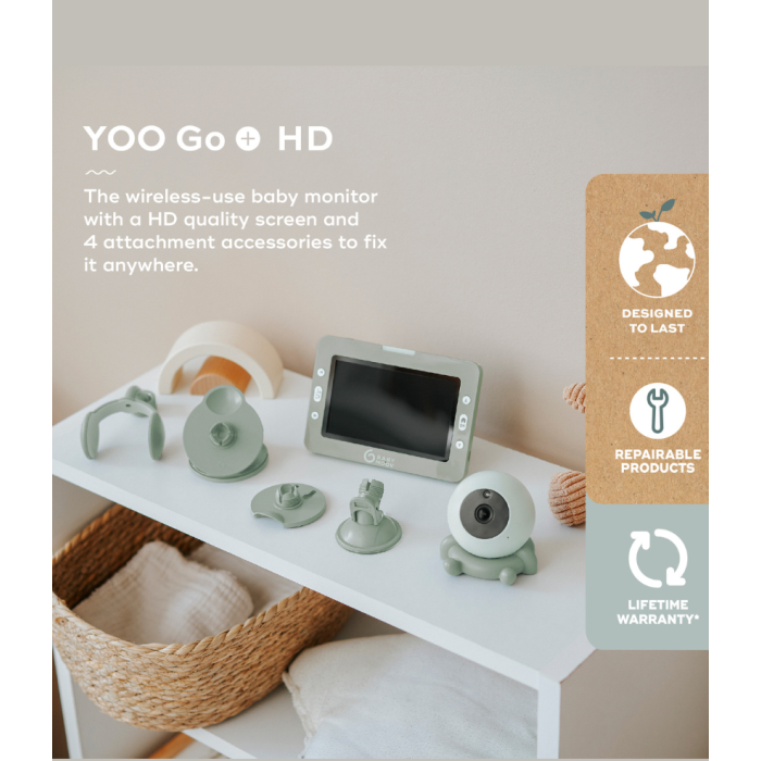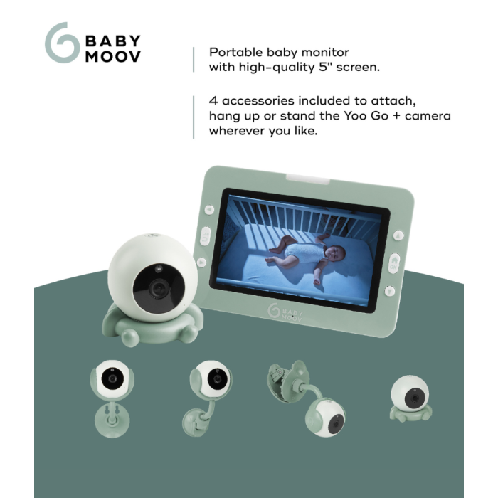 Babymoov Yoo Go Plus 5″ HD je bežični sferični video baby monitor niske emisije, dizajniran za roditelje koji žele sigurnost, fleksibilnost i kristalno čistu sliku svoje bebe – kod kuće i u pokretu. Zahvaljujući čak 4 praktična dodatka za pričvršćivanje, kameru možete smjestiti gotovo na svaku površinu u dječjoj sobi ili je ponijeti sa sobom na putovanja.