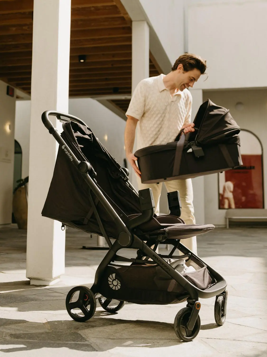 Postavlja se na Metro 3 kolica pomoću Metro 3 adaptera (kupuju se odvojeno) – jednostavne promjene između košare i autosjedalice za maksimalnu praktičnost na svakom putovanju.