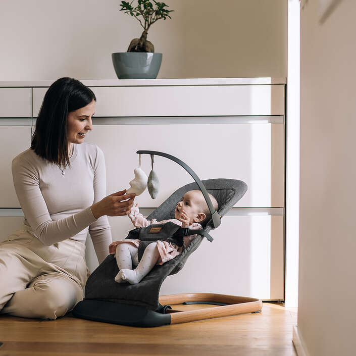 Minimalistička ležaljka koja nježno ljulja dijete temeljem njegovih pokreta.