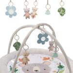Set uključuje 5 igračaka za aktivnost: ogledalo, dvije plišane igračke, šuškavu igračku i grickalicu. Igračke u potpunosti podržavaju psihomotorni razvoj vašeg mališana.