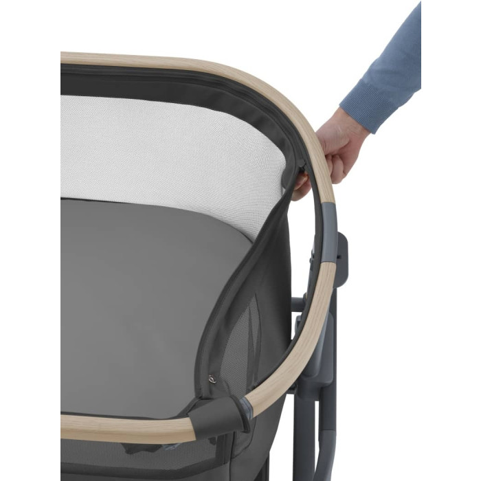 S poboljšanom amortizacijom i potporom, udoban i deblji madrac nudi blaženu razinu udobnosti kako bi vaša beba uživala u mirnom, umirujućem snu. Za vrijeme drijemanja kada je vaše novorođenče malo nemirnije, možete koristiti praktičnu značajku ljuljanja, jednostavnim okretanjem nožne potpore kako biste zaljuljali bebu dok spava. Maxi-Cosi Iora Air krevet za spavanje također ima mrežicu sa svih strana za maksimalnu cirkulaciju zraka, tako da će vaša beba uvijek udobno spavati. A s pet različitih položaja visine, svoju bebu možete uvijek držati blizu, sigurno i zaštićeno. Možete čak postaviti jednu stranu više od druge, kako biste olakšali bebi ako ima refluks ili začep.